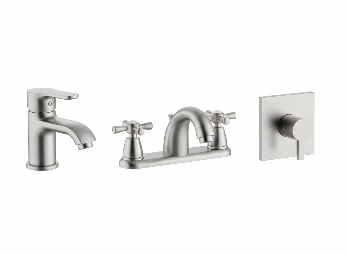 A widespread faucet has two separate handles and a spout — each mounted independently with 6–16 inches of spread. Common in master bathrooms and higher-end vanities. They look great but have more connections to maintain.